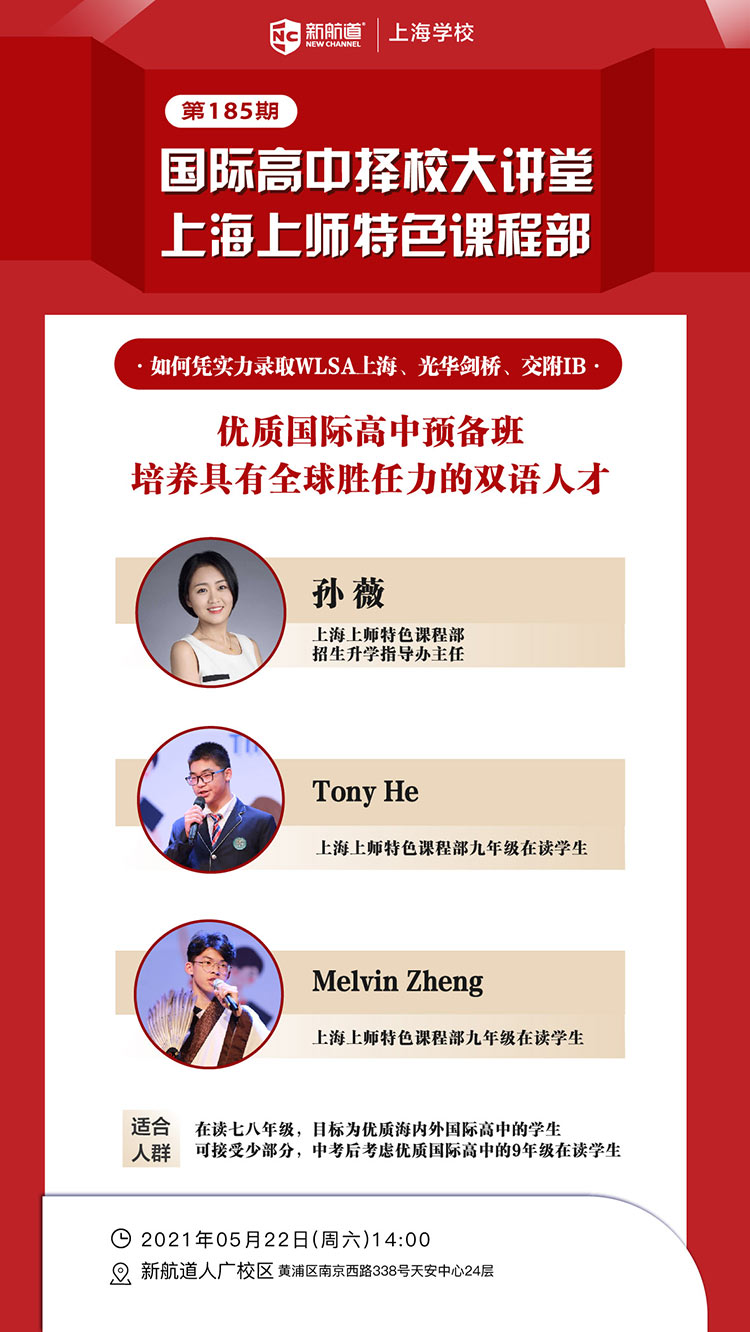 【讲座主题】:第185期 国际高中择校大讲堂 上海上师特色课程部