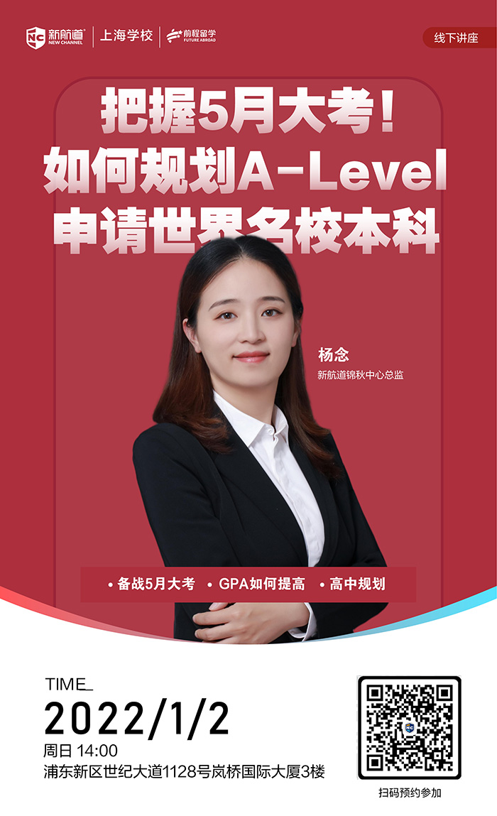 【讲座主题】:把握5月大考!如何规划A-Level申请世界名校本科