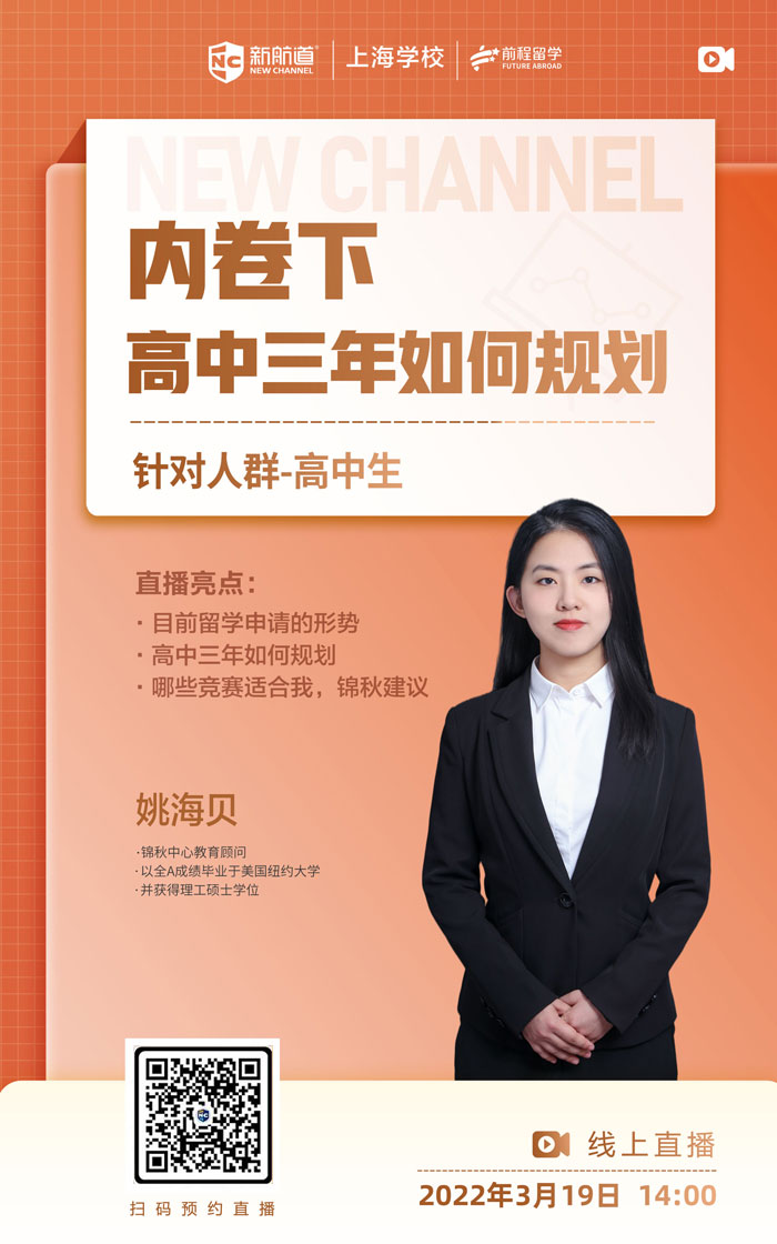讲座简介:姚海贝 ·锦秋中心教育顾问 -以全A成绩毕业于美国纽约大学·并获得理工硕士学位