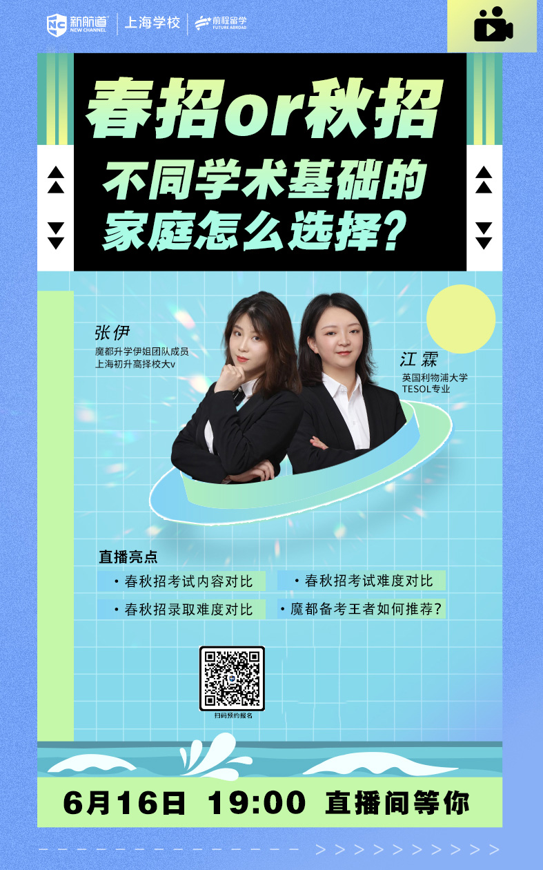 讲座简介:张伊: 魔都升学伊姐团队成员 上海初升高择校大v 江霖:英国利物浦大学 TESOL专业