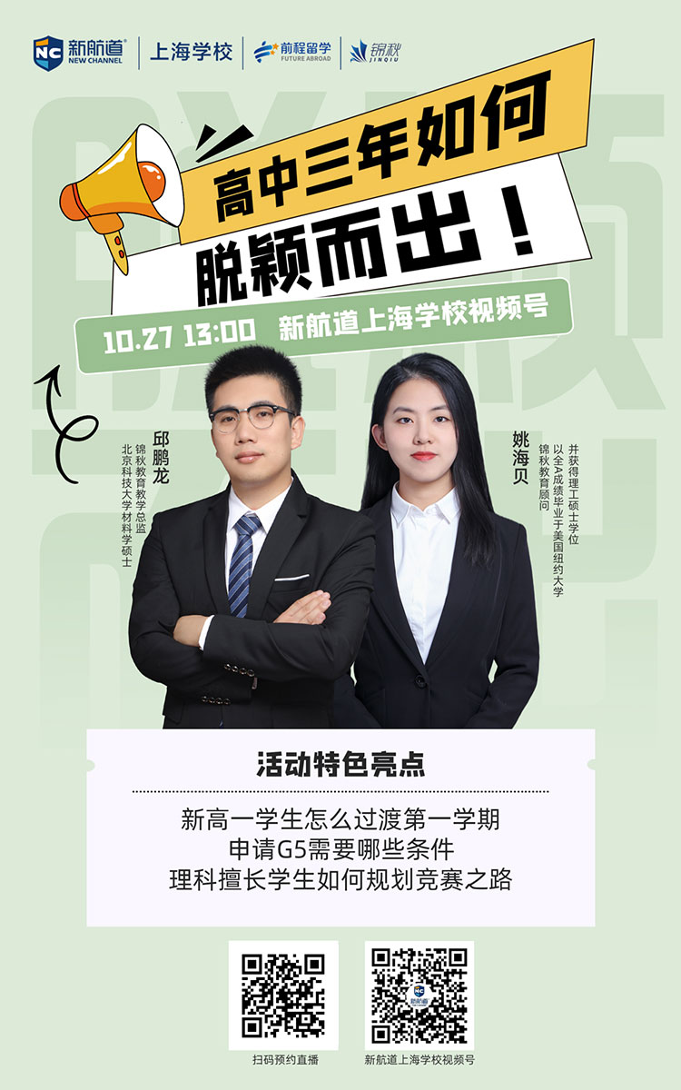 讲座简介:邱鹏龙 锦秋教育教学总监 北京科技大学材料学硕士 姚海贝 并获得理工硕士学位 以全A成绩毕业于美国纽约大学 锦秋教育局顾问