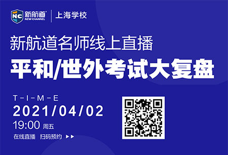 新航道徐家汇旗舰校区(徐汇区裕德路126号) 2021.4.5 14:00主题:新航道名师线上直播 平和/世外考试大复盘