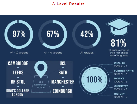 2020年,圣玛格丽特学校学生在A-Level考试中取得优异成绩,达到A*-B的比例为86%