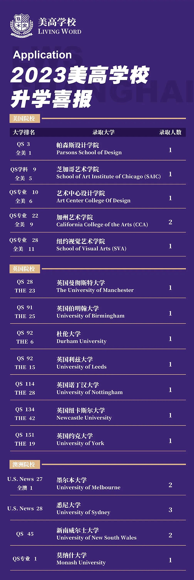 同时,澳洲方向,美高也是成绩斐然,墨尔本大学2枚本科录取,悉尼大学斩获3枚offer,还收到新南威尔士大学、莫纳什大学等offer