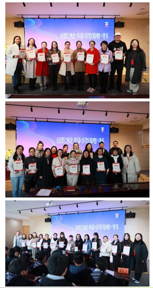 任老师说:“要坚持以人为本,关爱每一个学生和每一位教师,倡导‘学生人人有导师,教师人人是导师’人人都是德育工作者,人人成为学生良师益友。”话语里饱含了深深的爱、强烈的责任感和坚定的信任……领导们还为导师们颁发了聘书,并合影。