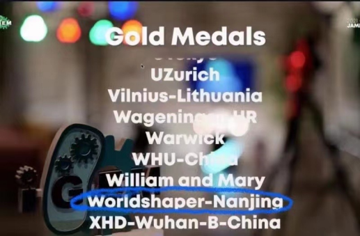 2021年11月,由我校国际部中美班的黄致君、杨曦程两位同学和其他学校同学(包含来自南外ib、南外中加、南外本部、南外仙林、南师ib、上海、西安、瑞士等14名高中生)共同组成的队伍“Worldshaper-Nanjing”在350支iGEM队伍中脱颖而出,获得了全球金奖(Gold)和最佳部件集合(Best Parts Collection)单项奖最佳提名。