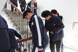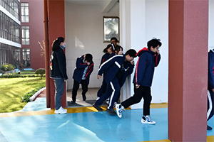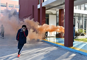 上午8点45分,随着警报响起,各班级学生在老师的指挥下,捂住口鼻、保持尽可能低的姿势,安全快速有序的向指定区域撤离。