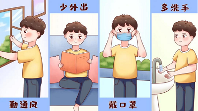 疫情期间居家要坚持适量运动,不沉迷电子产品,注意保护视力健康;养成勤洗手、戴口罩、常通风、少聚集、用公筷、分餐制等良好个人卫生习惯。