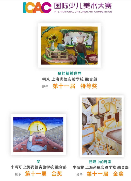 In the 11th ICAC, our students have won 42 awards, including outstanding award, gold, silver and bronze awards. There is one outstanding award, two gold awards, seven silver awards, nineteen bronze awards, and eleven excellence awards. The outstanding award winner Joanna’s artwork will be invited to participate in the Shanghai International Children's Art Biennale.