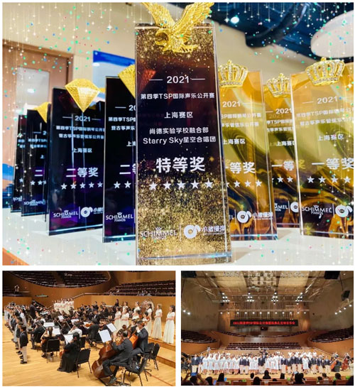 在学期初,尚德融合部学生星空合唱团和融合部家长天空合唱团,在2021年第四季TSP国际公开赛全国总决赛,与包括国际港澳台六大赛区在内3000余名专业选手的角逐中,以绝对高分双双斩获金奖!