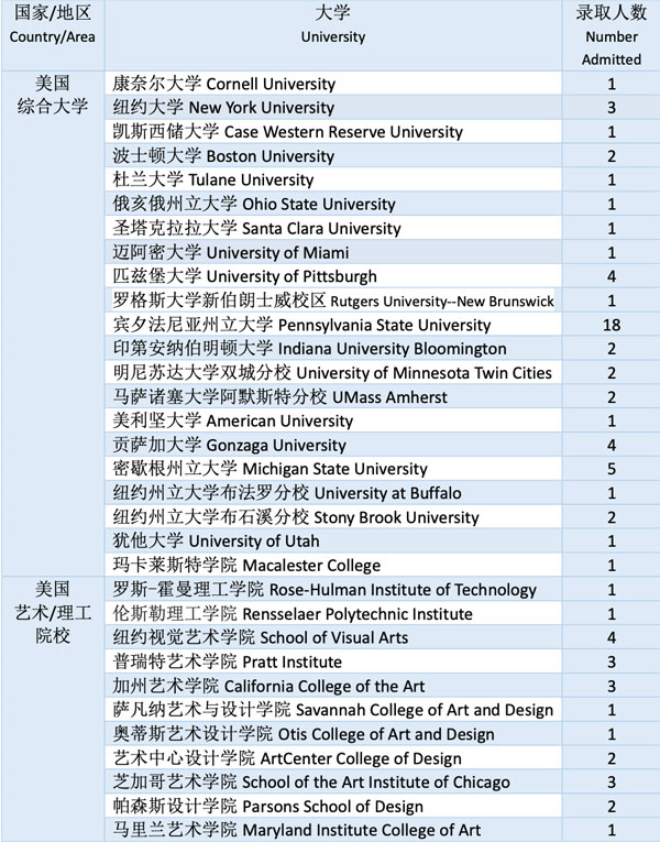截至2021年12月30日,2022届融合部学子已获得海外录取通知书共计192份,其中包括美国方向77份录取,英国方向94份录取,澳大利亚10份录取,加拿大方向6份录取及中国香港5份录取,涵盖航空航天、材料、环境、生物医药、物理、化学、生化、电子工程、传媒、电视电影、社会学、教育、经济、商务管理、时尚管理、金融会计、建筑设计及娱乐设计等近20个专业方向。