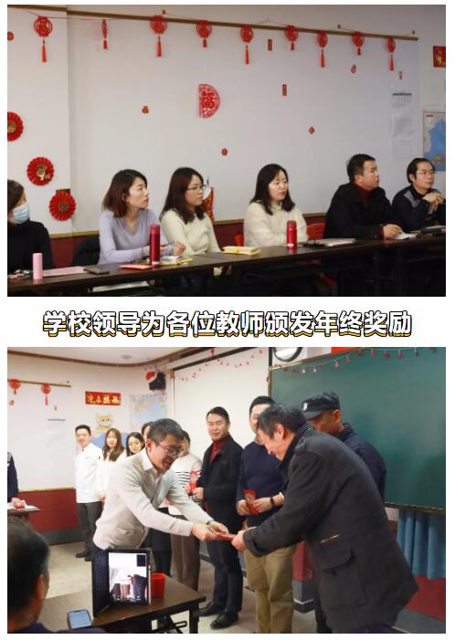 学校领导为各位教师颁发年终奖励