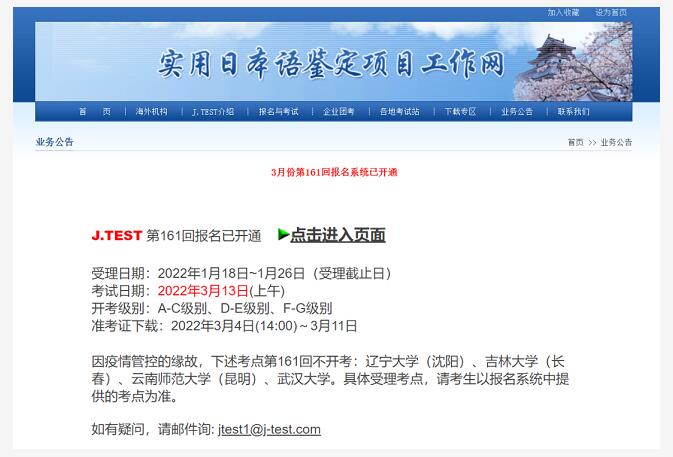 本文标题:第161回日语J-TEST考试报名已经开始了!