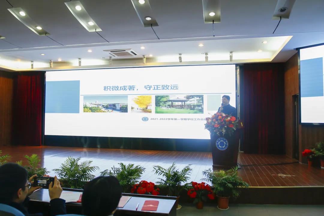 会上,赵光辉校长作了题为《积微成著,守正致远》的2021年度工作总结报告,通过一张张生动的照片全面总结和回顾了2021年学校各项工作所取得的显著成绩和重大突破。