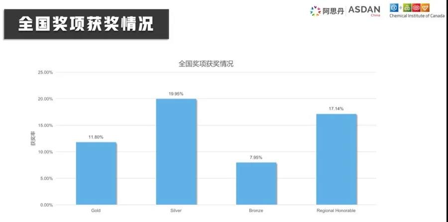 在全国奖项方面,36.36%的汉开学子获得全国金奖,36.36%获得全国银奖,18.18%获得区域优秀奖。