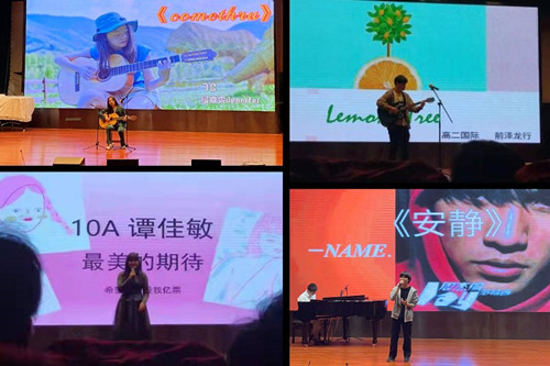 本次比赛还有不少优秀的独唱:11B李华的《Love Poem》,10A谭佳敏的《最美的期待》以及12B杉原真朝的《安静》。他们的表演落落大方,毫不胆怯,展现了他们扎实的歌唱功底。