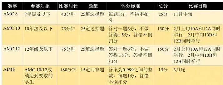 美国数学竞赛,即AMC,由美国数学协会于1950年举办,设置有全球奖项、中国赛区奖项和学校团体奖,中国大陆赛区中英文试卷统一时间开考。