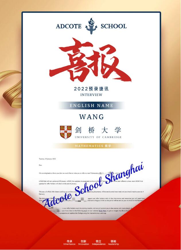 这是上海阿德建校以来获得的第12枚牛剑offer