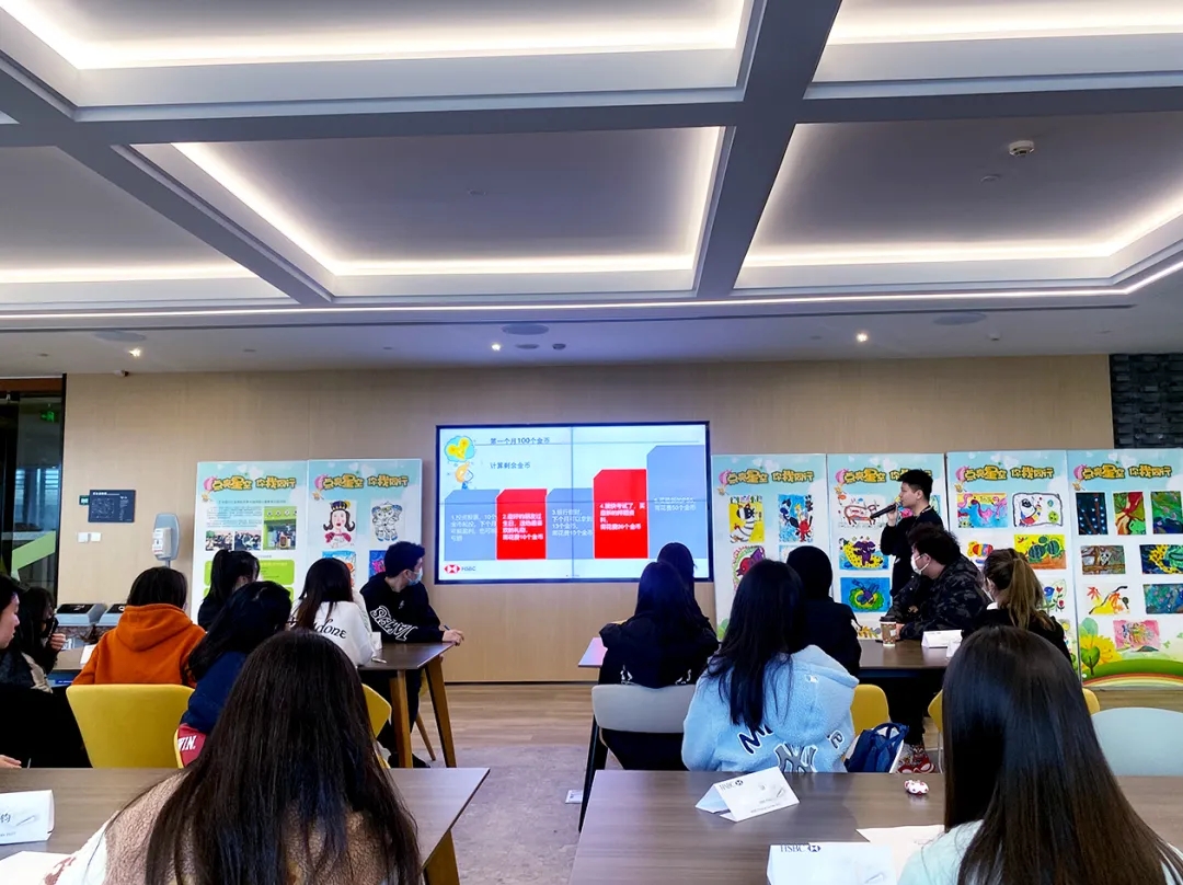 本次活动中,汇丰银行的Jason老师详细介绍了作为商业银行的基本业务。之后的破冰环节“零花钱大冒险”行动中,同学们分成4小组进行PK,第一次亲身感受“经济学”的魅力。