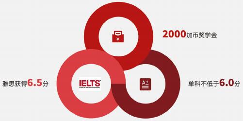 其中雅思奖学金,学生在高二学期结束前,雅思获得6.5分,单科不低于6.0分即可获得2000加币奖学金。
