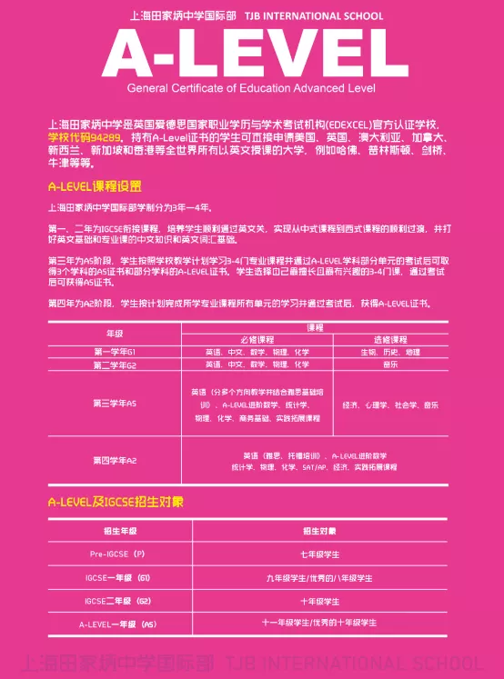本文标题:上海田家炳中学国际课程中心A-Level课程招生简章详情介绍