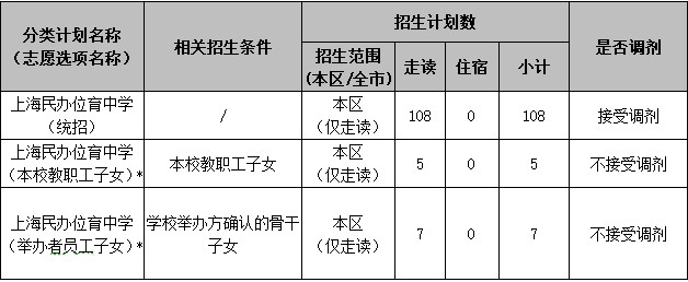 5月6日-5月8日,报名就读民办位育初中的学生须在“上海市义务教育入学报名系统”填报志愿,每个学生填报1所民办初中参加电脑随机录取,并可填报1个民办初中调剂志愿。