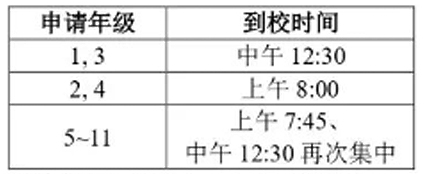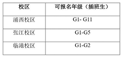 使用上述日期。入学活动都在浦西校区进行。各校区插班生可报名的年级为: